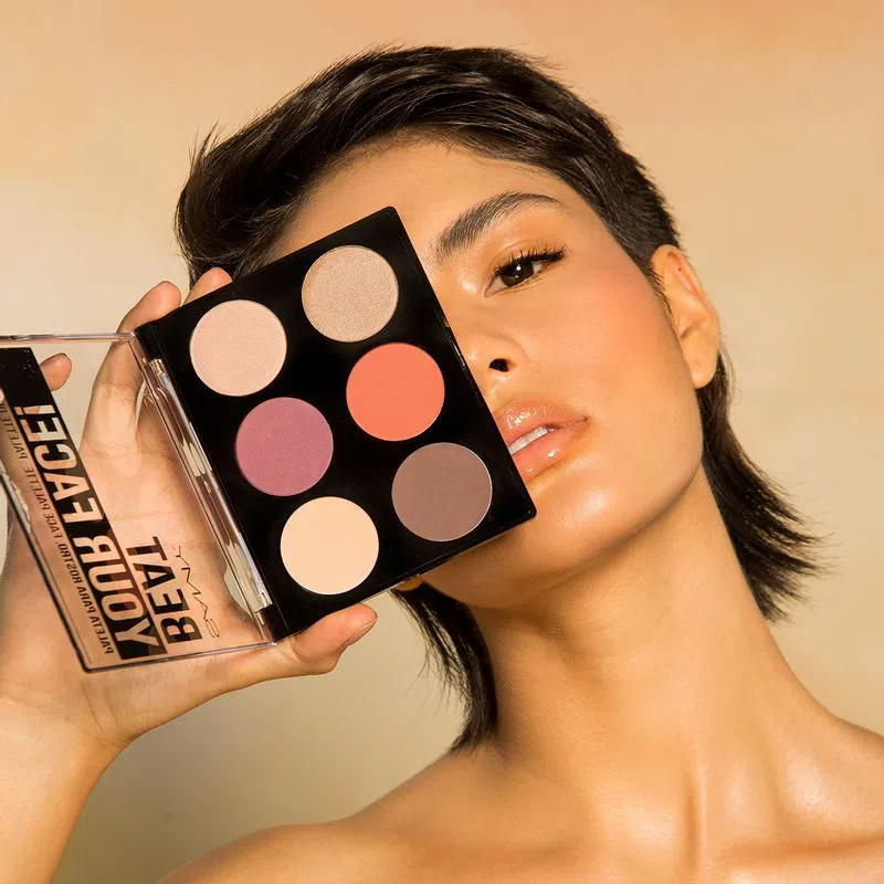 Esta práctica y multifuncional paleta para rostro reúne todo lo que se necesita para hacer un maquillaje fácil y natural. Esta compuesta por un polvo compacto mate para iluminar, un bronzer mate para perfilar, y dos rubores mates y dos iluminadores para darle luz y color al rostro.